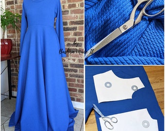 Web Vogue Sewing Pattern for Womens Knit Dress Maxi Dress Pattern Long Sleeve.